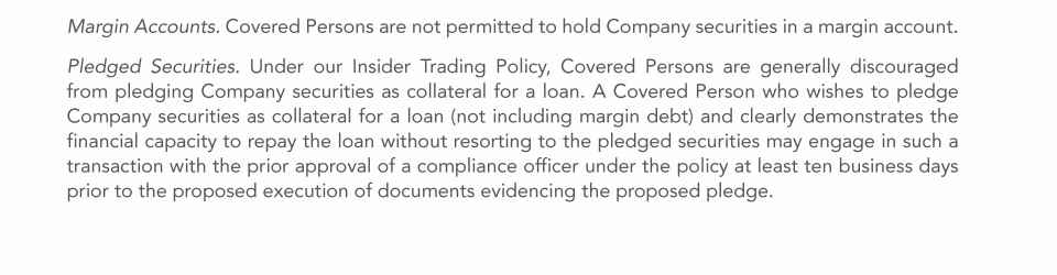 Trading Restrictions Regarding Hedging or Pledging of Common Stock