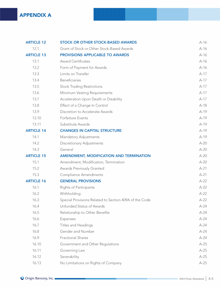 Appendix A - Origin Bancorp, Inc. Omnibus Incentive Plan